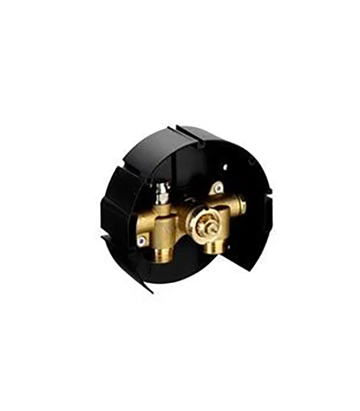 FHV-R, duvara gömme veya sıva üstü montaja uygun olarak tasarlanmış şık, yuvarlak beyaz bir duvar bağlantı kutusu içerir. Bu kutu, vana, sensör ve boru bağlantılarını içeride gizleyerek sadece estetik bir ön kapak ve ayar düğmesinin görünmesini sağlar. Bu sayede, özellikle yaşam alanları içinde kalan duvarlarda temiz ve profesyonel bir tesisat görünümü elde edilir .